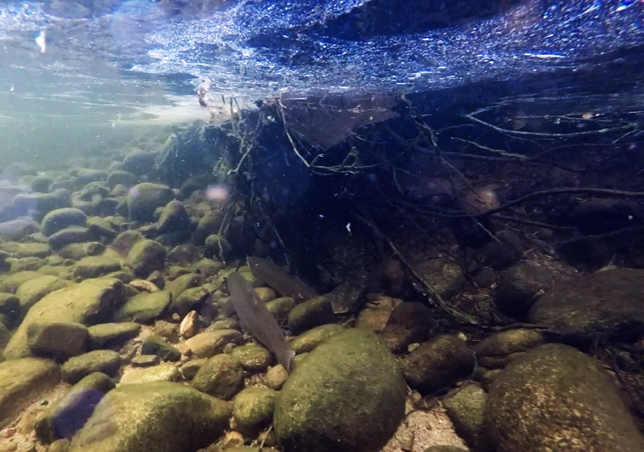 This includes our unique and endangered Atlantic salmon population. Fish are already using these structures. Through our ongoing monitoring of these sites, we have witnessed juvenile Atlantic salmon using LWS to shelter, potentially from heat and predators. By providing these young fish with an environment to grow into healthy migrating smolts, we are boosting the probability that they will return as spawning adults to use the gravels created by the effect of water flow around the structures.